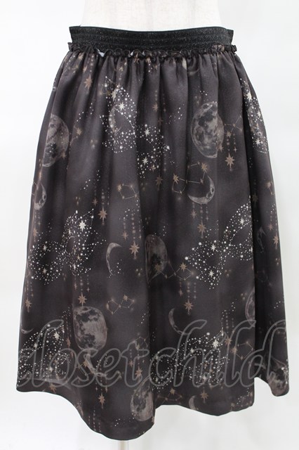 elements,H / moon printスカート 2 黒 H-25-04-06-024-PU-SK-KB-ZH