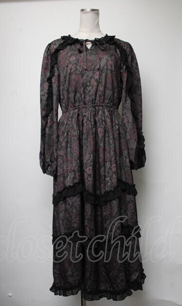 axes femme NOSTALGIE / 花柄フリルシフォンワンピース 黒 S-25-03-23-1041-AX-OP-HR-ZS
