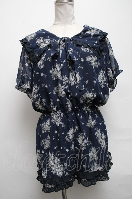 Bubbles / 花柄オールインワン 紺 S-25-03-25-028-CA-OP-AS-ZT032