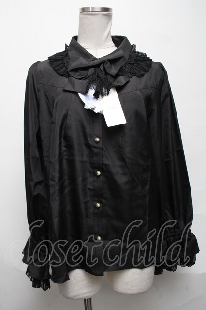 axes femme kawaii / プリエールフリルブラウス 黒 S-25-03-25-030-AX-BL-HR-ZS