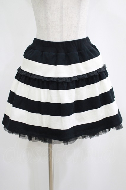 MILK / Wideボーダースカート 黒 H-25-04-07-1026-ML-SK-KB-ZH