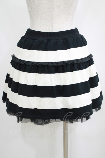 MILK / Wideボーダースカート 黒 H-25-04-07-1026-ML-SK-KB-ZH