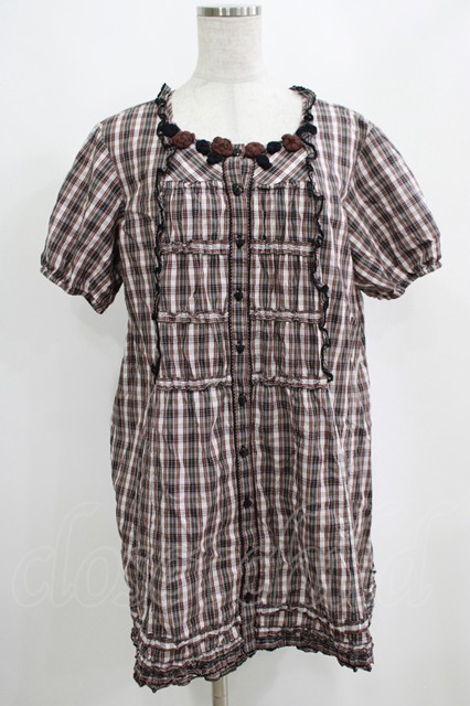 PINK HOUSE / チェックフリルチュニック Free ブラウン H-25-04-10-1060-LO-OP-NS-ZH