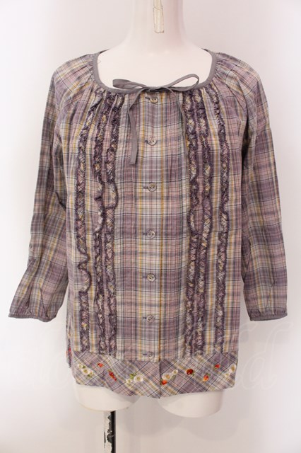 PINK HOUSE / いちご刺繍チェックブラウス ラベンダー O-25-03-29-029-LO-BL-IG-OS