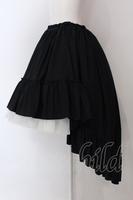 MARBLE / 前短・後長V字フリル重ねロングスカート ブラック O-25-03-29-018-GO-SK-OW-OS [戻る]