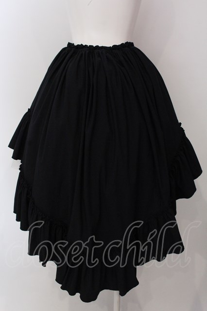 MARBLE / 前短・後長V字フリル重ねロングスカート ブラック O-25-03-29-018-GO-SK-OW-OS