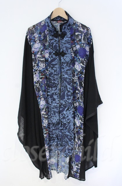 Qutie Frash / チャイナ着物ロングカーデ ブルー O-25-12-03-009-QU-JA-IG-ZT1208B