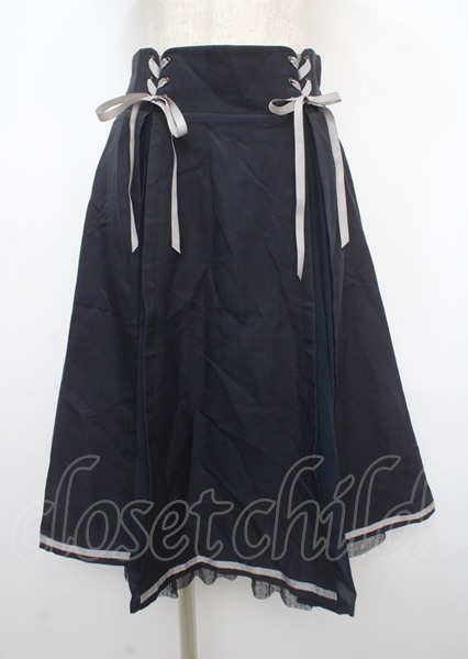 axes femme POETIQUE / レースアッププリーツ切替スカート M 紺 Y-25-04-03-169-AX-SK-SZ-ZY