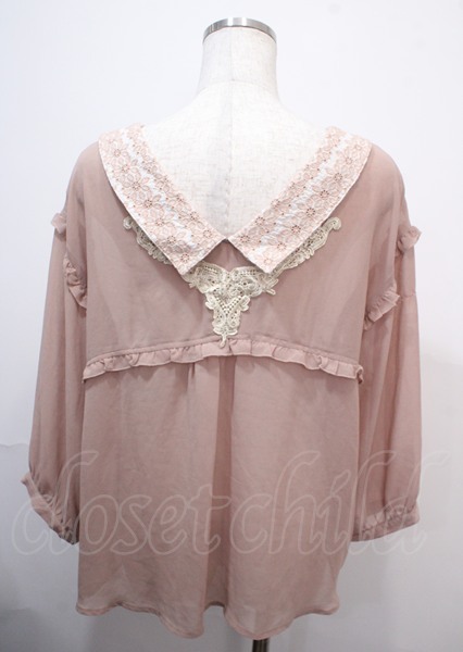 axes femme / 七分丈フロント刺繍ブラウス M 淡ピンク Y-25-03-26-073-AX-BL-SZ-ZT436