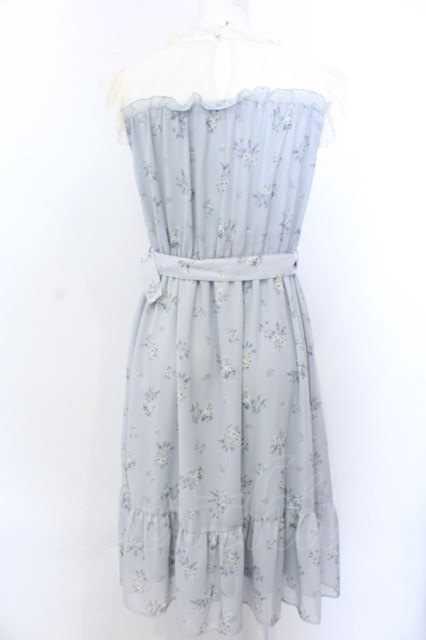 axes femme / レース切替花柄ワンピース M サックス O-25-04-04-056-AX-OP-OW-OS