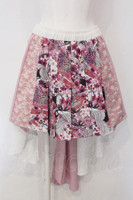 Qutie Frash / 和柄プリーツスカート ピンク O-25-04-05-029-QU-SK-OW-OS