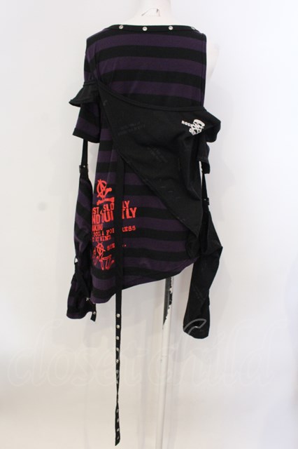 Drug Honey / アームカバー付きレイヤードボーダーカットソー パープル×ブラック O-25-04-07-013-PU-TO-IG-OS