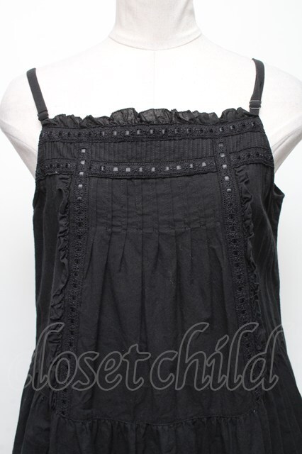 PINK HOUSE / はしごレースピコフリル使いキャミワンピース 黒 S-25-04-06-070-LO-OP-HR-ZS