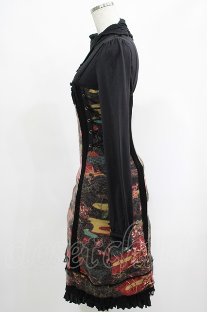 Ozz oneste / 和柄キャミワンピ&ハイネックカットソーSET 黒 H-25-04-19-022-OO-OP-KB-ZH