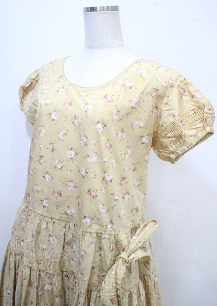WONDERFUL WORLD / ローズ柄たくしあげワンピース ベージュ Y-25-04-11-066-LO-OP-SZ-ZY