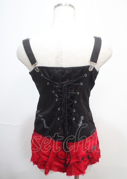h.ANARCHY / 飛沫ptプリーツガーゼタンクトップ 黒×赤 Y-25-04-11-072-HN-TO-SZ-ZS