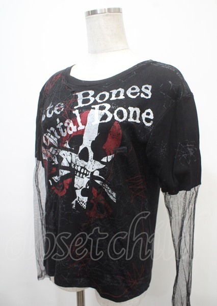h.ANARCHY / 蜘蛛の巣レースメッシュスリーブカットソー 黒 Y-25-04-11-080-HN-TO-SZ-ZS