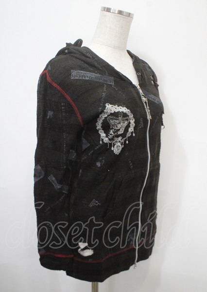 h.ANARCHY / ダメージ入背中あきボーダーニットパーカー 黒 Y-25-04-11-094-HN-TO-SZ-ZS