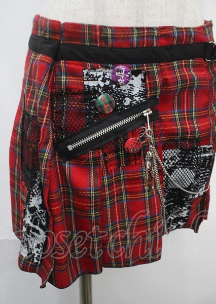 h.ANARCHY / チェック柄デコスカート 赤 Y-25-04-11-120-HN-SK-SZ-ZS