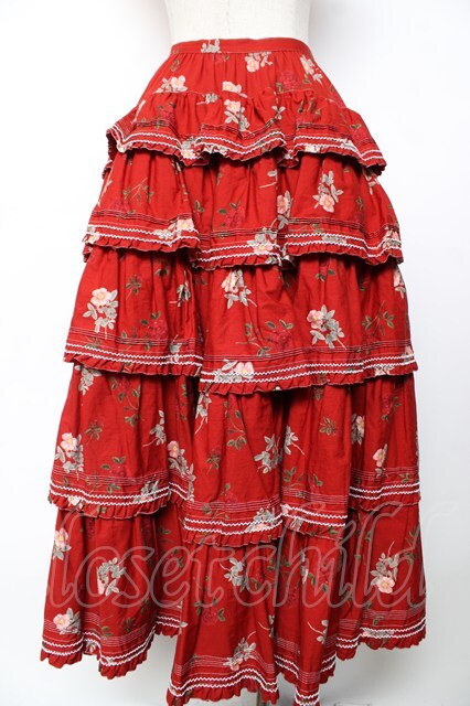 WONDERFUL WORLD / 花柄ティアードロングスカート 赤 Y-25-12-08-098-LO-SK-SZ-ZY