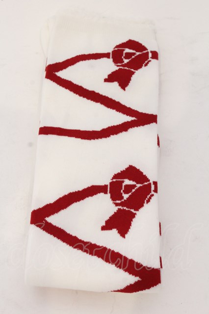 BABY,THE STARS SHINE BRIGHT / レースアップ柄オーバーニー シロ×えんじ O-25-04-10-093-BA-ZA-IG-OS