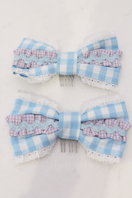 Angelic Pretty / POPチェックリボンコーム サックス×ラベンダー O-25-04-10-094-AP-AC-IG-OS