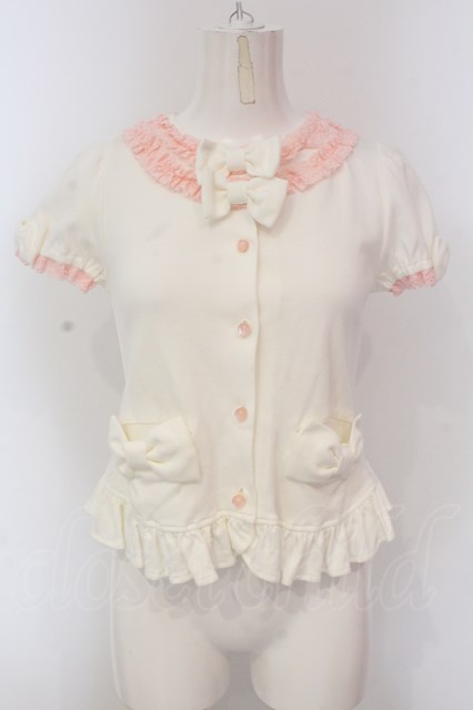Angelic Pretty / リボントッピングカットカーディガン オフシロ×ピンク O-25-04-10-020-AP-TO-IG-OS