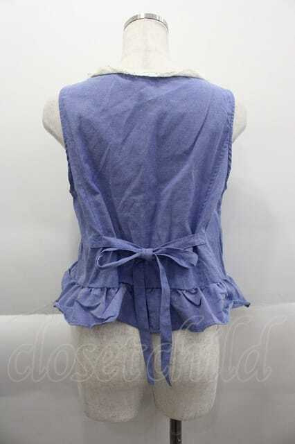 axes femme / 薔薇刺繍ダンガリーベスト ブルー I-25-04-10-015-AX-TO-HD-ZI