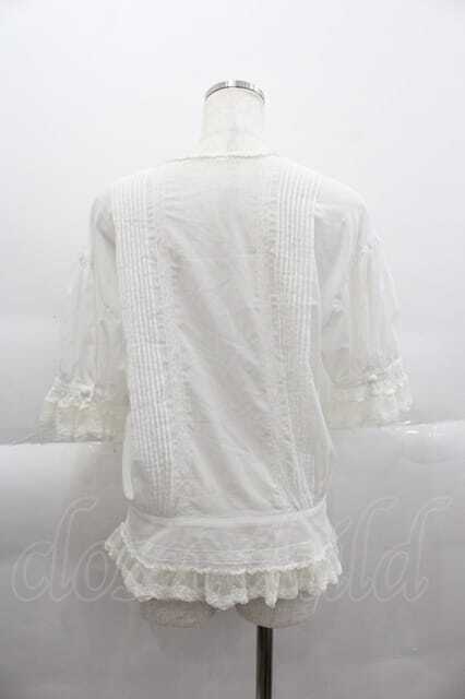 INGEBORG / レース&リボン2つ半袖ブラウス ホワイト I-25-04-10-028-LO-BL-HD-ZI