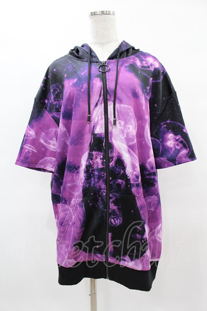 NieR Clothing / 総柄ZIP半袖パーカー 黒×紫 H-25-04-22-034-PU-TO-KB-ZH