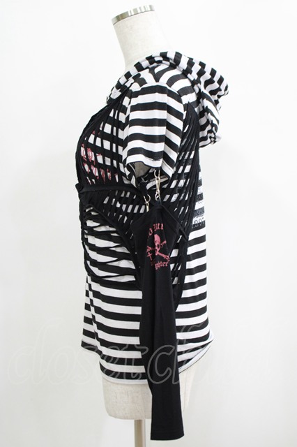 MAD / アーム付ネコミミフードカットソー M 黒×白 H-25-04-21-1053-PU-TO-KB-ZH
