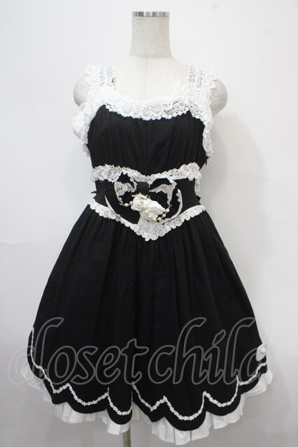 BABY,THE STARS SHINE BRIGHT / バニランスカラッププリンセスジャンパースカート 黒x白 Y-25-04-15-074-BA-OP-AS-ZY