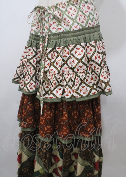 WONDERFUL WORLD / モチーフ付きパッチワークティアードスカート グリーン系 Y-25-07-11-137-LO-SK-SZ-ZY