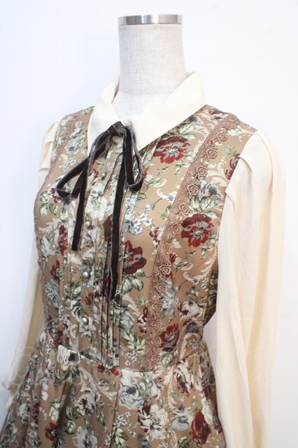 axes femme / クラシカルフラワーワンピース/ミュルーズ染織美術館コラボ 茶 Y-25-04-20-118-AX-OP-SZ-ZY