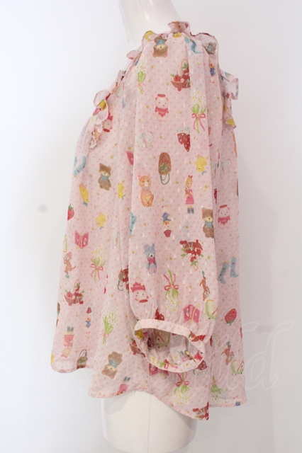 yukiemon / オーナメント柄テキスタイル5分袖ブラウス ピンク O-25-04-17-094-LO-BL-IG-OS