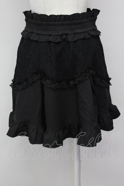 DearMyLove / レースフリル切替フレアスカート LL 黒 T-25-04-23-019-EL-SK-SA-ZI