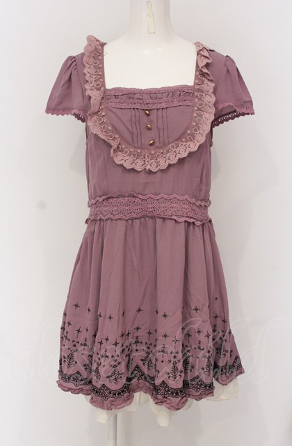 axes femme / 裾刺繍ワンピース M ピンク×アイボリー O-25-04-20-046-AX-OP-IG-OS