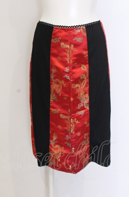 Ozz On / チャイナジャガード切り替えスカート ブラック×レッド O-25-04-20-027-OO-SK-IG-ZY