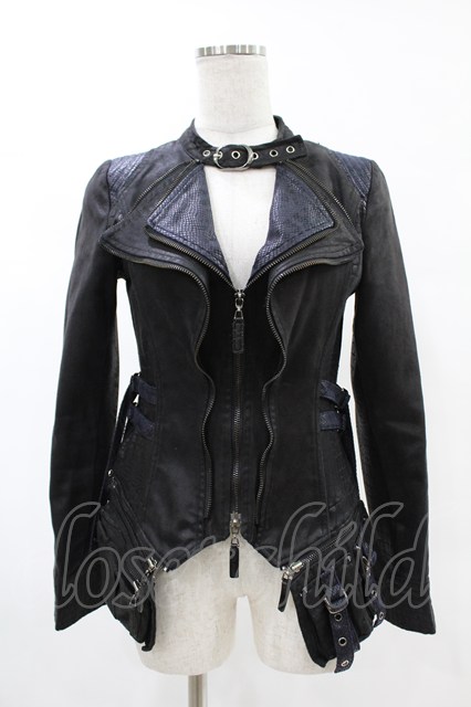 Qutie Frash / ダブルカラーライダースジャケット 黒 H-25-05-04-046-QU-JA-KB-ZH