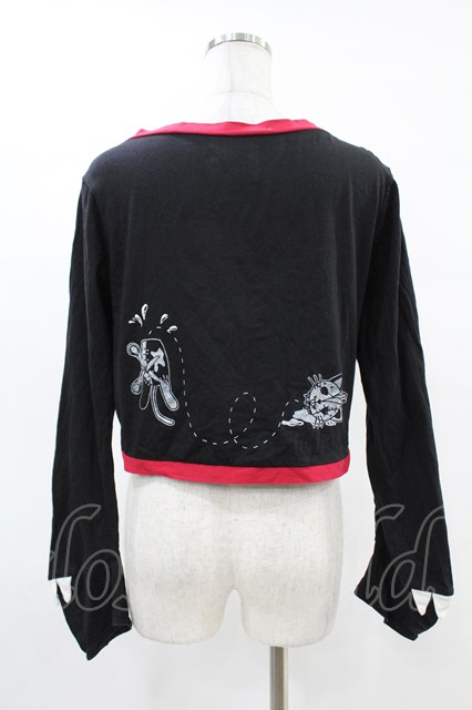 HANGRY&ANGRY / プリントカットソーボレロ 黒×赤 H-25-05-07-1042-HN-TO-KB-ZH