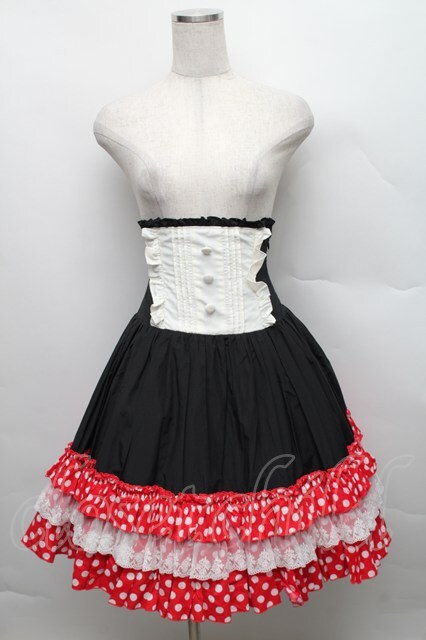 ATELIER PIERROT / コルセットスカート・ミニーマウス 黒x赤 S-25-12-16-040-EL-SK-AS-ZT520