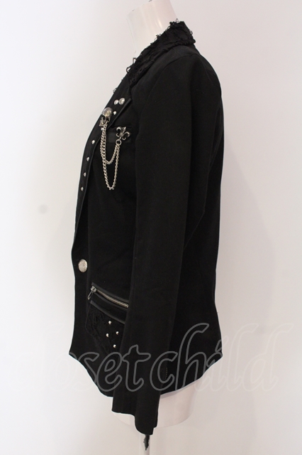 SEX POT ReVeNGe / ダメージ配色テーラードジャケット ブラック O-25-04-26-058-SP-JA-IG-OS