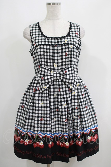 Ank Rouge / ギンガムトリコロールチェリーウエストリボンワンピース M ブラック H-25-05-09-1017-CA-OP-NS-ZH