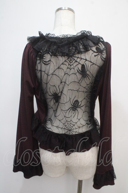 Qutie Frash / 蜘蛛の巣レース レースアップボレロ ワイン×黒 Y-25-04-28-052-QU-TO-SZ-ZY