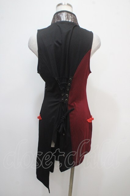 Qutie Frash / 龍ptチャイナアシメノースリーブチュニック 黒×赤 Y-25-04-28-055-QU-OP-SZ-ZY
