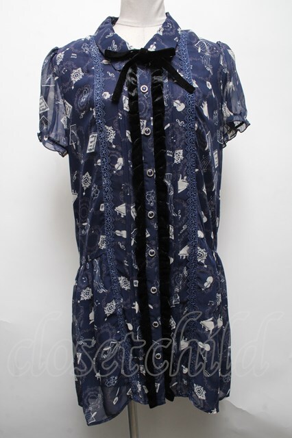 axes femme / 楽器柄チュニック 紺 S-25-04-28-026-AX-OP-HR-ZS
