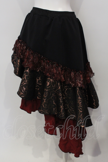 Qutie Frash / 三段アシメスカート レッド×ブラック O-25-04-29-015-QU-SK-OW-OS