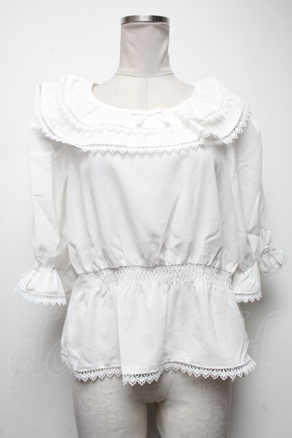 axes femme kawaii / フリル襟シャーリングブラウス 白 S-25-04-27-014-AX-BL-HR-ZS