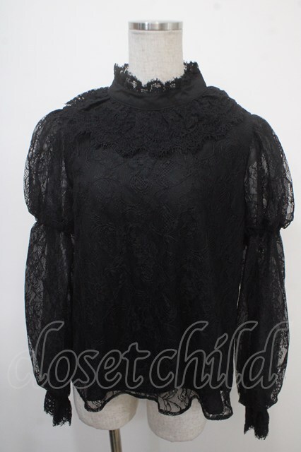 axes femme kawaii / レーシー2段パフ袖ブラウス M 黒 Y-25-04-30-122-AX-BL-SZ-ZY