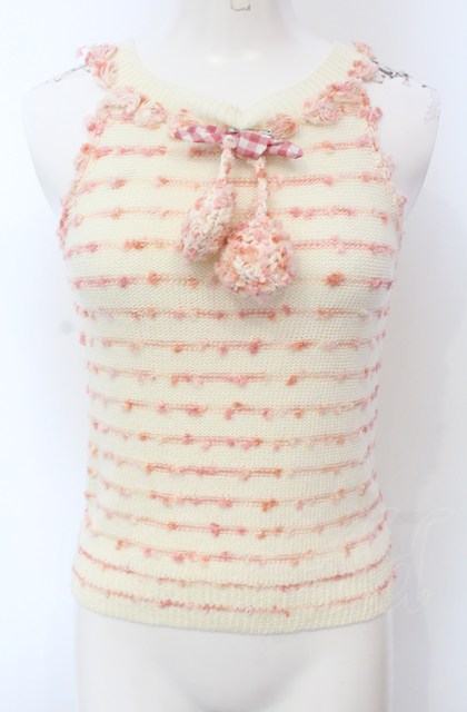 Jane Marple / チェリーモチーフニットトップス アイボリー×ピンク O-25-04-30-2132-JM-TO-IG-OS